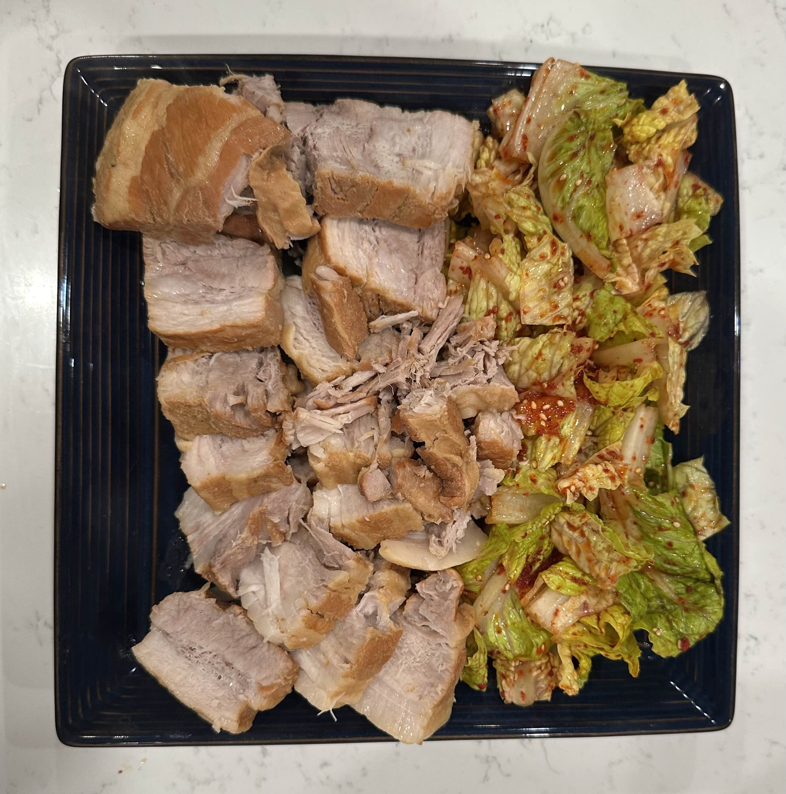 김장엔 수육에 배춧국인데, 미국 생활하면서 김장 경험은 전무. 혼자하는 김장이라니 흥도 나지 않을 거 같고, 거기에 더해 김치 냉장고도 없는 살림이니 김장은 오버인 듯. 그렇다고 수육을 못해 먹을 건 아니니, 삼겹살 몇 덩이 사다가 소분해두고 한 번씩 간단하게 준비해 본다.